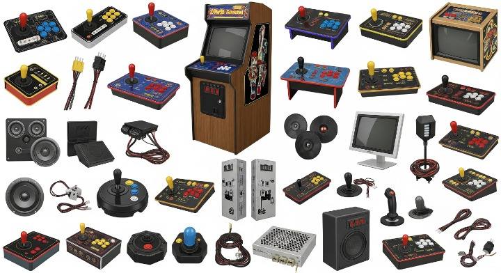 Joysticki, przyciski, monitory, płyty główne i wszystkie części potrzebne do naprawy automatów.